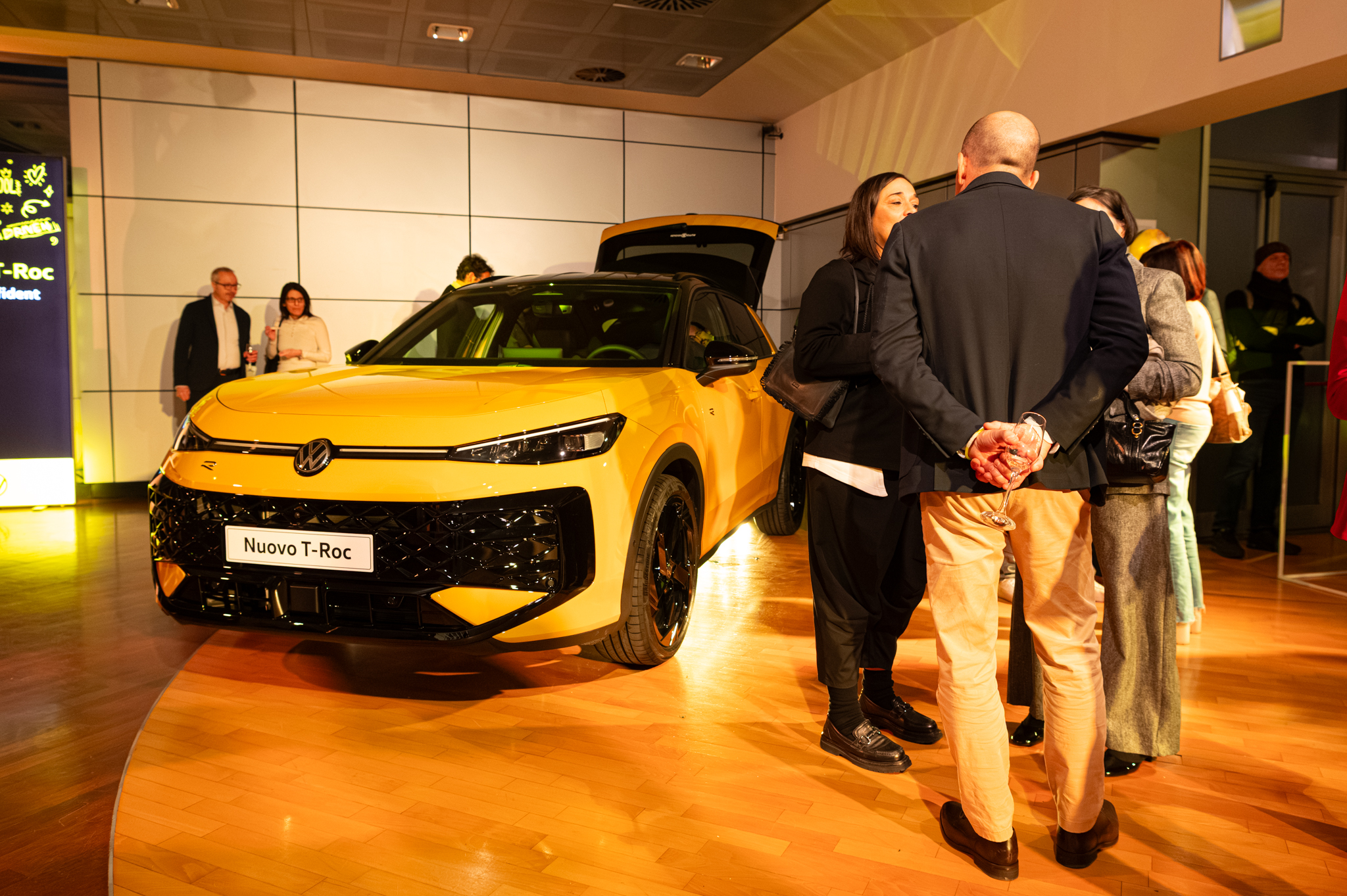 Il menu, ispirato al mondo T-Roc, ha giocato su contrasti cromatici giallo e nero e su un’interpretazione street food in chiave chic: finger food gourmet e un primo piatto iconico, risotto allo zafferano con spolverata di liquirizia, pensato per sorprendere e coinvolgere anche il palato.